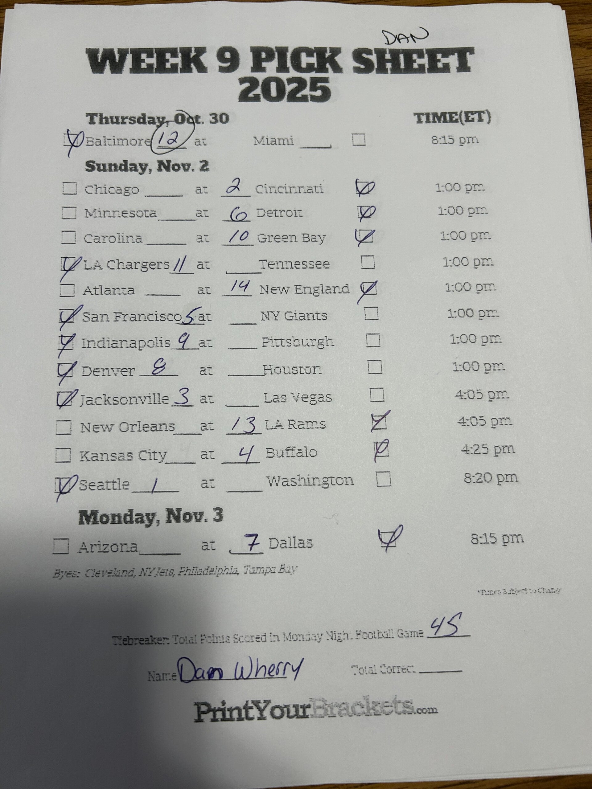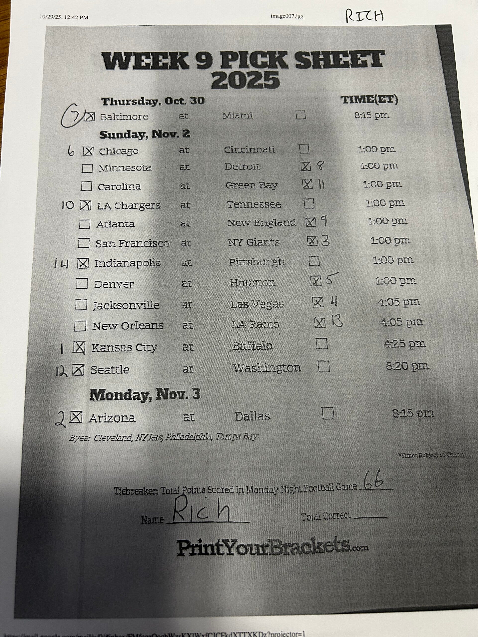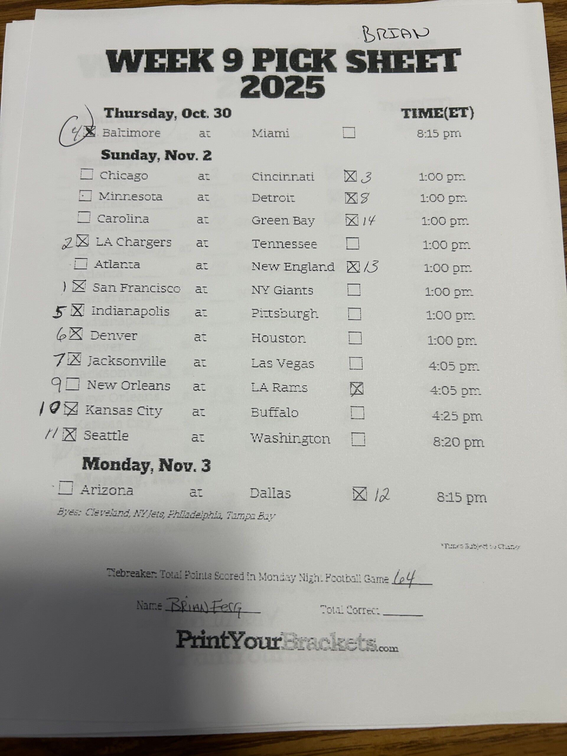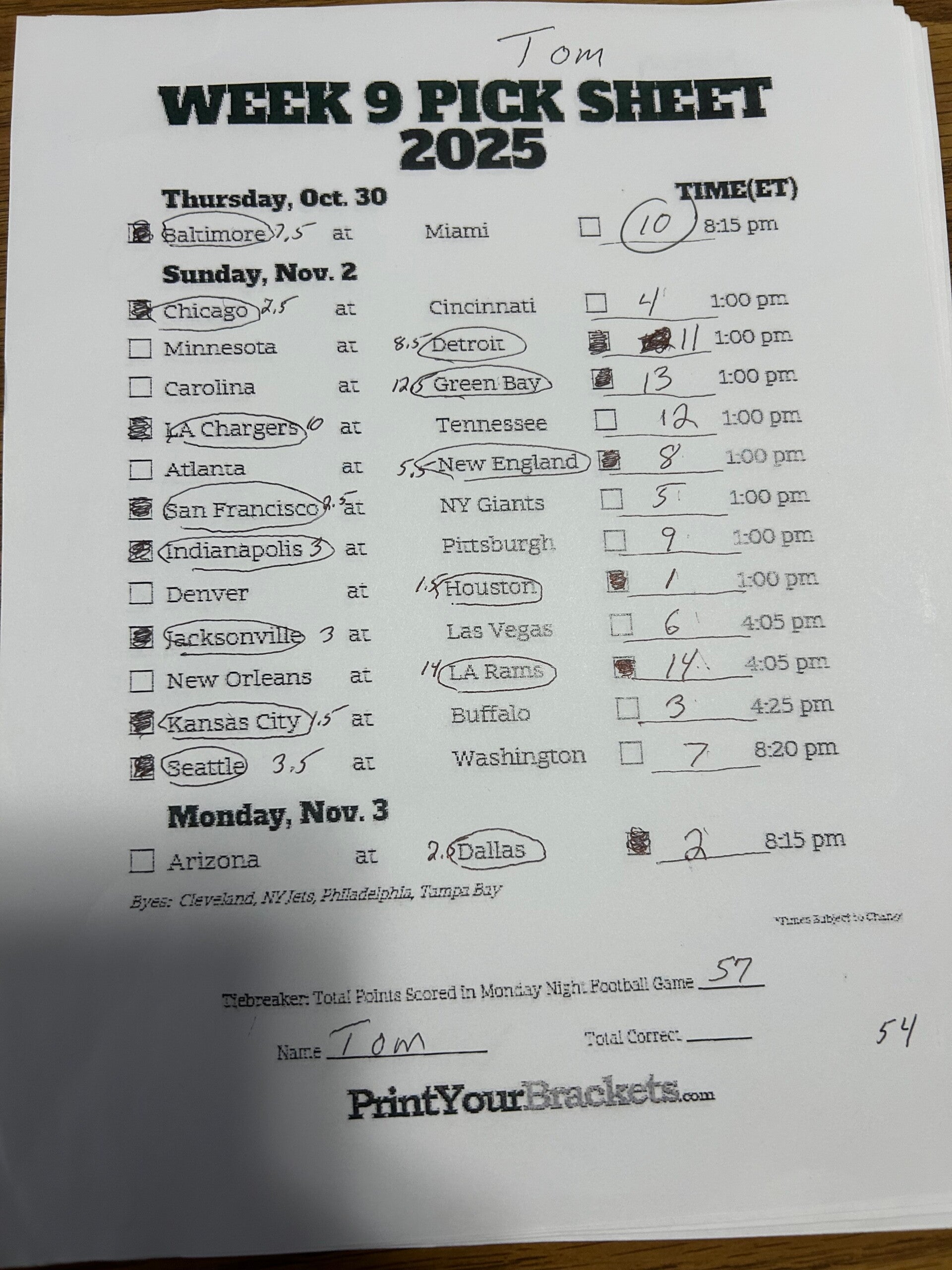 Alex NFL confidence pool 2025